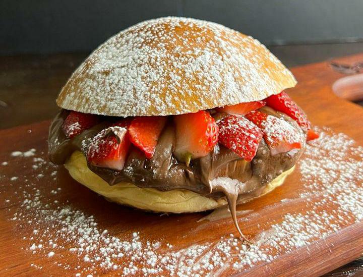 PÃO DE BRIOCHE, NUTELA E MORANGOS